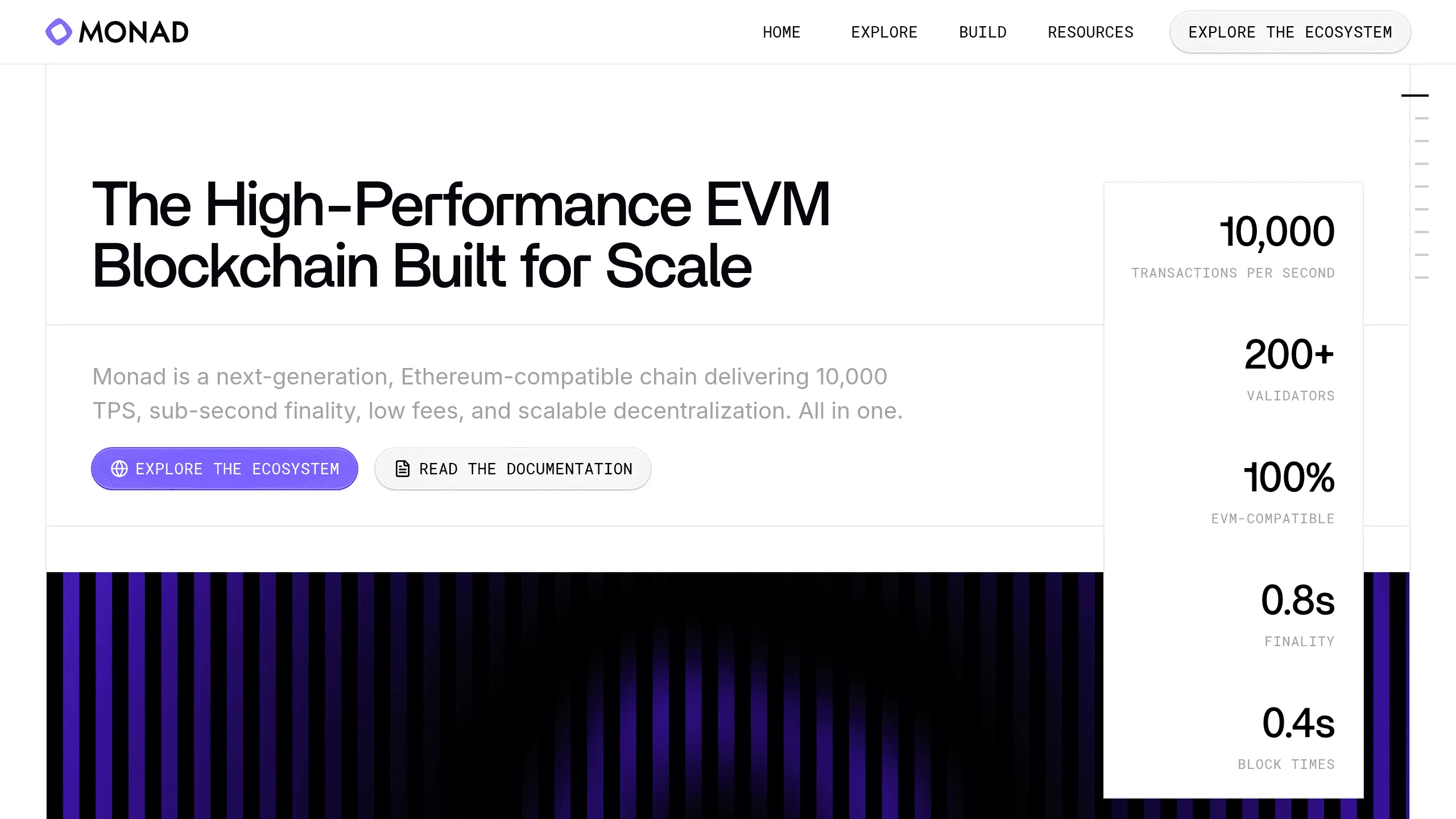 Monad is a next-generation blockchain that addresses the blockchain trilemma by delivering 10,000 transactions per second, 0.8-second finality, and 0.4-second block times while maintaining full EVM compatibility. Built for scale without compromise, Monad enables developers to create applications that were previously impossible on traditional EVM chains.